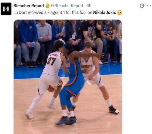 但這場失利尼古拉-約基奇絕對不該背鍋,他在終場前1分12秒剛剛被多爾特的橫臂擊中麵門,約基奇的鼻梁被多爾特手臂擊中,約老師倒地不起,裁判給了多爾特一級惡意犯規。