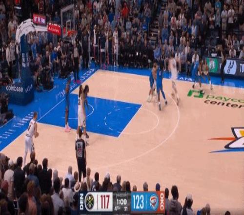 最後,戈登後場超遠三分,三不沾,雷霆三殺掘金。