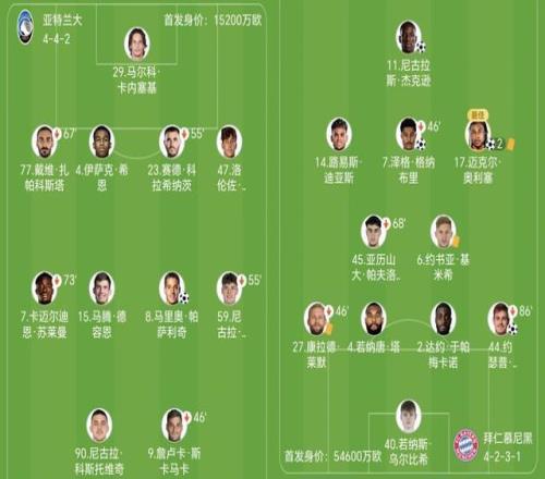 真藍黑亞特蘭大坐鎮主場迎來拜仁的挑戰,主教練帕拉迪諾派出克爾斯托維奇和斯卡馬卡搭檔雙前鋒。