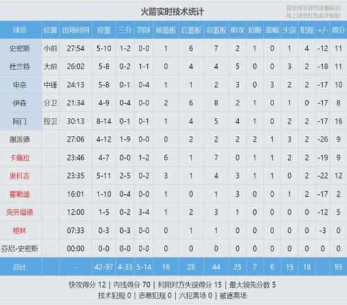 火箭打成這樣,肯定不是杜蘭特自己的問題。火箭首發中鋒申京投籃8中5,三分1中0,罰球4中0,僅得10分2籃板3助攻3蓋帽,正負值-17。大中鋒隻搶到2個籃板球,更紮心的是罰球4中0。火箭全隊罰球14中5,罰球命中率35.7%。