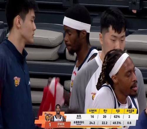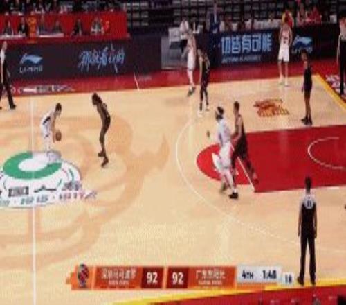 最後21秒,徐傑和薩林傑終於打成了一次流暢連線配合,徐傑擋拆分球薩林傑,後者三分抬手即中,廣東建立4分領先。