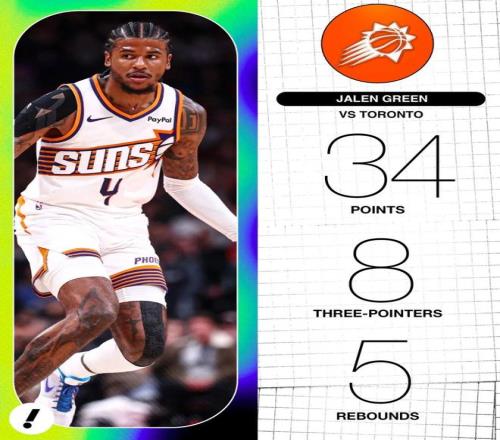 值得一提的是,本場的太陽是背靠背作戰,上一場他們在客場123-106戰勝步行者,那場比賽傑倫格林的表現也是可圈可點:
