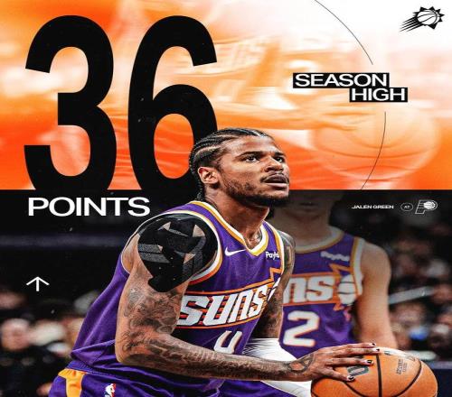 全場出戰34分鍾,投籃23中14,三分9中3,罰球7中5,得到36分3籃板4助攻4搶斷,36分刷新太陽生涯最高,同時正負值達到了+16。