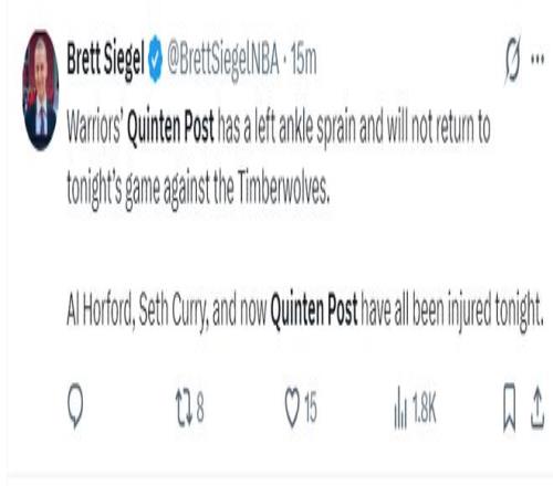 勇士媒體對小庫裏、霍福德、波斯特一同傷退感到非常的難過。