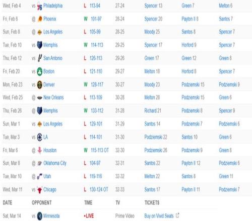 庫裏自1月31日後就沒有出戰過,最近的16場比賽勇士輸掉其中的11場,加之開拓者擊敗爵士隊,換言之西部第十的開拓者與西部第九的勇士隻差0.5個勝場,勇士隊掉到西部第十隻是時間問題。