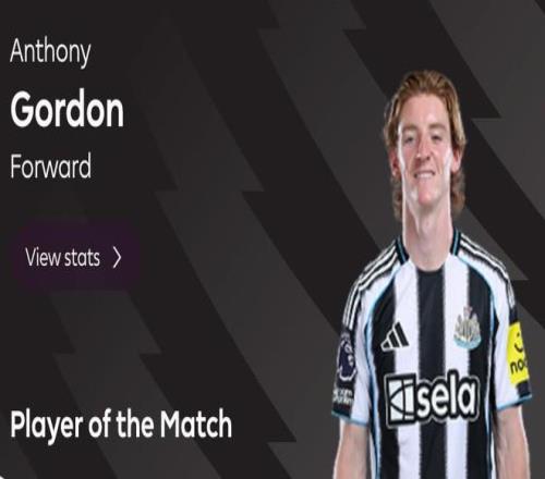 北京時間3月15日,在英超第30輪的比賽中,安東尼-戈登開場18分鍾打進的全場唯一進球幫助紐卡斯爾聯在客場1-0擊敗了切爾西,時隔14年再次在聯賽中從斯坦福橋球場帶走勝利,賽後安東尼-戈登當選英超官方本場比賽的最佳球員。