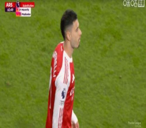 第61分鍾,阿森納連換兩人,馬丁內利、哲凱賴什替補登場