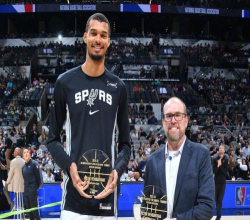 憑借這樣的表現,文班賽前才領取了2月份最佳球員+2月份最佳防守球員兩項大獎。