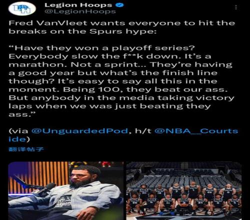 由於遭遇十字韌帶撕裂大傷,範喬丹在養傷期間開啟同名個人播客節目《Fred VanVleet》銳評聯盟熱點事件,本賽季狀態火爆的馬刺隊自然成為其討論的話題之一。