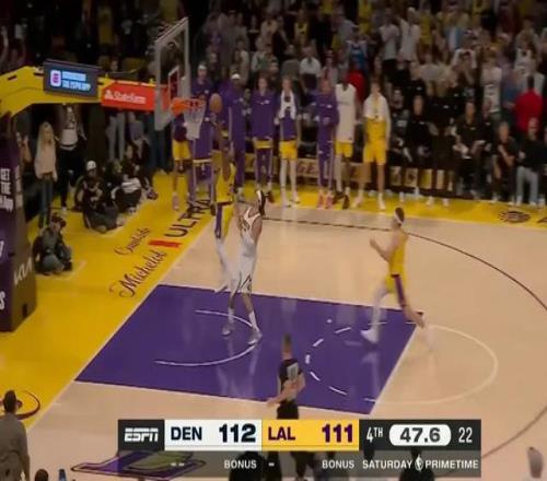 約基奇打進上籃再度追平比分,湖人的最後一攻交給東契奇。東契奇先是準備走中路,看到布朗上來夾擊之後馬上轉向來到底角,讓掘金包夾失效。隨後麵對瓊斯的單防,在底線位置撤步中投,絕殺命中,為這場比賽畫上一個再完美不過的句號。