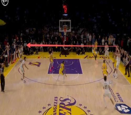 下個回合,約基奇再次展現了自己恐怖的球場視野。湖人把防守資源幾乎全部傾斜在約基奇身上,把約基奇逼到了右側邊線的位置。但約基奇一記超級大對角傳球,傳給了底角的哈達威,後者命中三分再次反超。