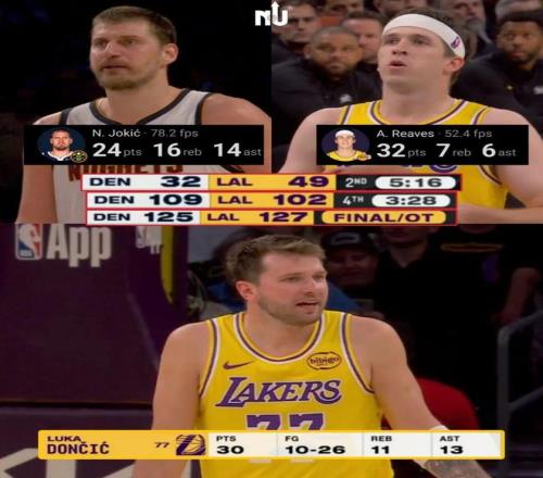 湖人一度領先到17分,但約基奇看破湖人策略,找布魯斯·布朗,找底角的瓊斯,連續追近。湖人則是盧卡與裏夫斯輪流找穆雷。