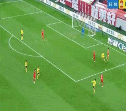 第71分鍾,兩位剛替補登場的球員完成連線,劉祝潤傳中,武磊門前連續補射得手,海港3-0西海岸。