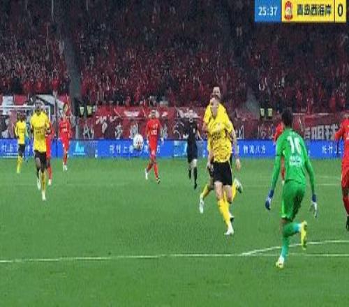 第32分鍾,青島西海岸險些打破僵局,戴維森左路反擊內切兜射,皮球擊中立柱彈出。