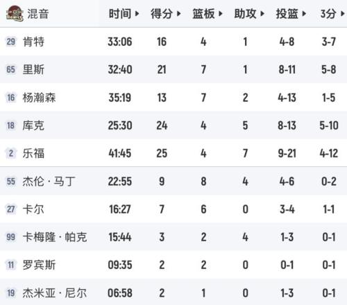 另外,樂福的存在也影響了楊瀚森的表現。此前與聖迭戈快船的2場比賽,楊瀚森分別貢獻31分8板3助1搶斷1蓋帽(16投14中),以及16分13板2助攻1蓋帽,表現很給力。當時樂福均不在場,混音隊確立楊瀚森為核心,在內線持球攻,展示背身勾手絕活,打出信心了。再看看這場與湖人的比賽,樂福打了接近42分鍾,21投9中,得到25分4板7助,樂福各種單打,持球時間太長了,楊瀚森成為球隊配角,在三分線外等球。