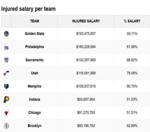 根據統計,勇士受傷球員的總薪水已經高達1.93億美元,占全隊薪水的93.1%,聯盟最高。他們今天派出的首發是波傑姆斯基、理查德、桑托斯、萊昂斯、波斯特,5人合計年薪不到1000萬美元!