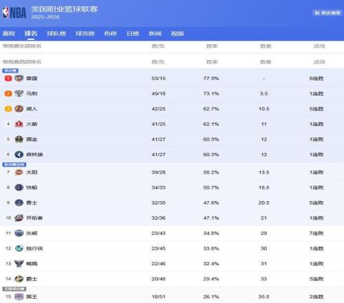 NBA25-26賽季正在火熱進行中,而打到現在,各支球隊的成功都在15以內了,排名上的爭奪也是陷入了白熱化,打得好,球隊排名提升,打得不好,排名下降,失去季後賽的有力對陣形勢,所以這對於各支隊伍來說都很重要,競爭也是變得更加激烈,導致NBA排名大變臉:火箭湖人搶第3,3隊爭西部第5,騎士隊第4難保!