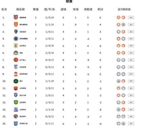 閃電體育3月16報道 日前,中超聯賽第二輪賽事結束第二輪爭奪,本輪戰罷,積分榜與射手榜均呈現出全新態勢,各隊表現有喜有憂。