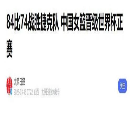 3月15日晚,中國女籃坐鎮主場迎來世預賽第四輪關鍵對決——迎戰歐洲勁旅捷克隊。經過四節鏖戰,姑娘們以84比74力克對手,不僅贏下這場硬仗,更提前鎖定2026年柏林世界杯入場券,邁出通往世界頂級舞台的關鍵一步。