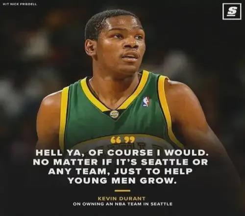 話說杜蘭特本人不止一次在公開場合呼籲西雅圖能夠重新擁有一支NBA球隊,甚至他願意回歸無論是以何種身份。
