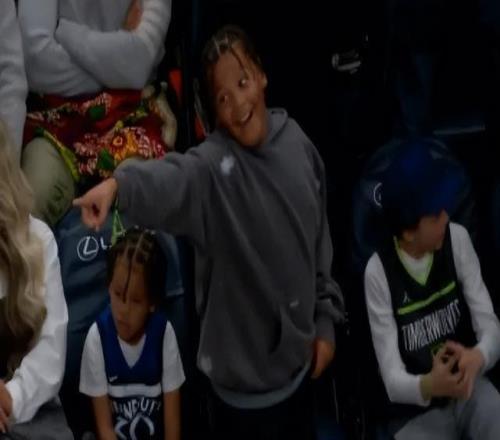 末節一個回合,蘭德爾單打弗萊明,一個轉身直接甩掉對手打成暴扣2+1,場邊的兒子站起來興奮慶祝。印象裏蘭德爾兒子還是那個輸球之後會爆哭的小屁孩,沒想到現在都長這麽大了。