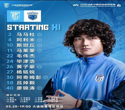 雙方首發:大連英博門將是黃子豪,後防線:呂焯毅和毛偉傑打兩個邊後衛,畢津浩和馬馬杜組成雙中衛。前場:斯坦丘和楊銘銳打兩個邊前衛,隊長廖錦濤和阿利米組成雙後腰。前鋒是阿奇姆彭和馬萊萊。