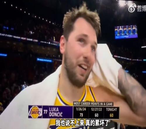 3月20日消息,3月20日結束的NBA常規賽中,湖人背靠背以134-126擊敗熱火,豪取8連勝。本場比賽,東契奇爆砍60分7籃板,賽後他表示,自己累壞了,但是這場勝利展現了湖人的強大韌性。