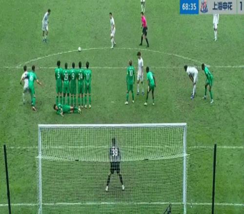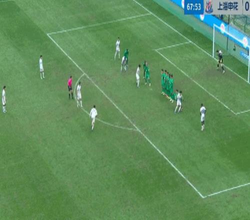 在上半場,張玉寧的進球幫助北京國安以1比0的比分領先。比賽的第66分鍾,阿卜杜海米提撞倒米內羅,陳晉一主罰任意球左腳勁射破門,1比1!