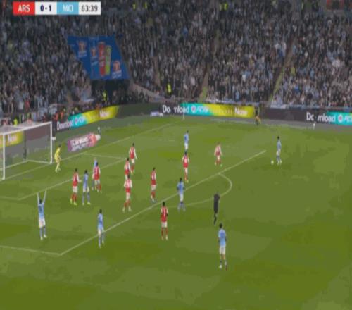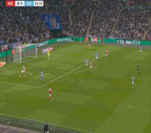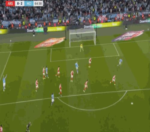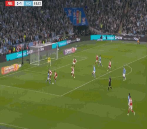 因卡皮耶已經因為盯人而收到中間,所以加布裏埃爾沒有及時外擴,這讓特羅薩德等於在一防二,在這種情況下,曼城門前多人爭頂,奧賴利來到薩卡身前完成破門: