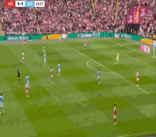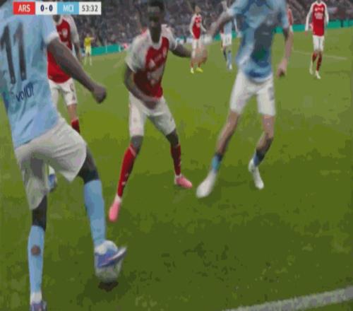 可惜的是,阿森納全場隻收獲3次角球,逼迫曼城10次犯規,其中一次角球機會,還是薩卡單打製造的: