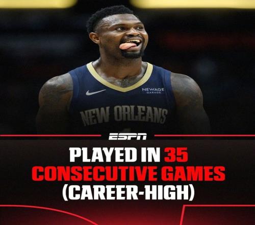 胖虎真乃神人啊,連續出場35場比賽都能讓記者專門發個報道,甚至特意搞了個海報。本賽季胖虎的出勤率高達70%,別看35這個數據不起眼,但已經是胖虎生涯最長的一次連續出場紀錄了。