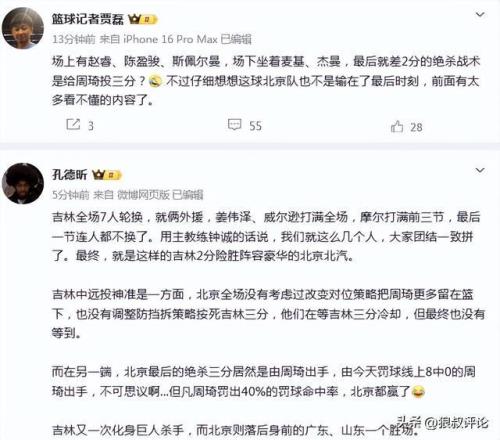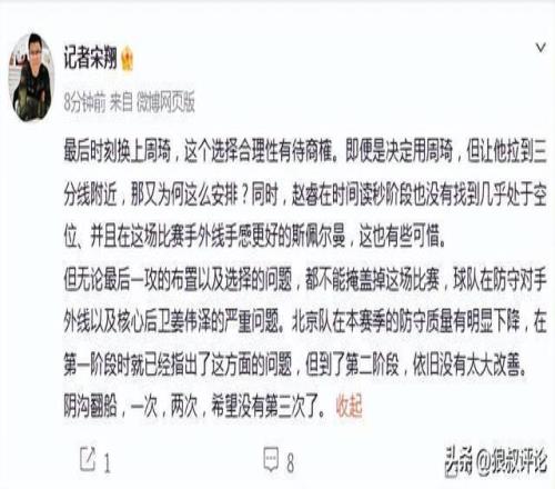 籃球記者賈磊發文點評: