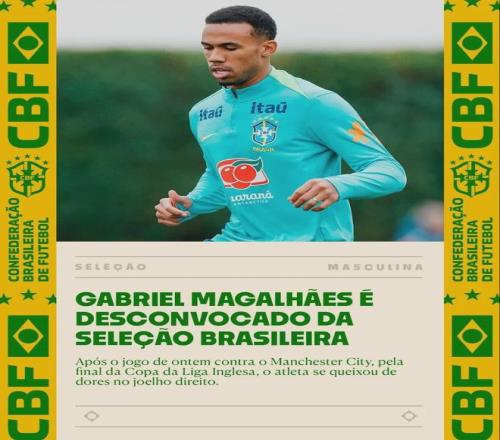 官方:巴西足協宣布加布裏埃爾因膝傷(右膝疼痛)退出了本次國家隊。