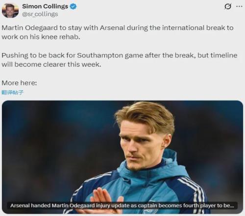 太陽報記者SC消息,厄德高在國際比賽日期間將留在阿森納繼續恢複,這名中場已經因膝傷缺席一個月之久。