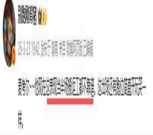 別跑剛背豬究竟批的是誰呢?沒錯,他批的是打首發的小外援麥考爾。昨晚在三個小外援中,表現最差的是麥考爾,他根本打不了控衛,很難串聯球隊,很難組織起有效的戰術,多餘動作太多太難看,突破又突不起,毫無殺傷力,全場隻有兩次罰球,可以說殺傷力為0。沒突破,沒三分,沒組織,貨真價實的三無小外援,要這樣的外援有何用?也難怪媒體人怒批麥考爾這表現當半場搬運工都不靠譜。其實這位關心廣東隊的媒體人,早在第一階段就建議裁掉正在養傷的麥考爾。現在看來杜鋒讓他留下,就是一個大錯誤。