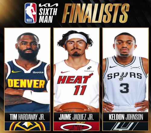 NBA季後賽正在如火如荼地進行當中,常規賽各大獎項也在陸續揭曉。在此之前,馬刺隊的文班亞馬全票當選DPOY,雷霆隊的SGA以484分的高分當選年度最佳關鍵球員。按照NBA聯盟官方的安排,第3個要揭曉的個人獎項是年度最佳第六人。根據此前的報道,馬刺隊的凱爾登約翰遜、掘金隊的小哈達威和熱火隊的哈克斯是該獎項的三大終極候選人。就在剛剛,NBA官方準時公布了年度最佳第六人!