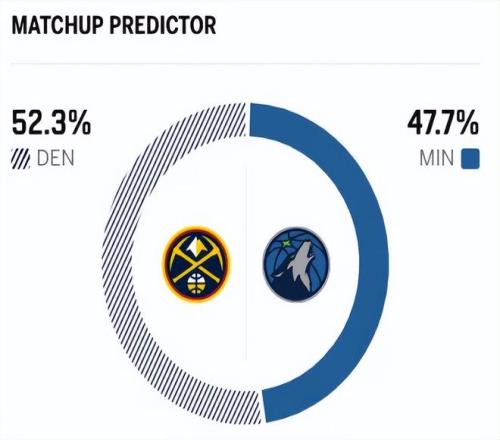 賽前,美媒ESPN對本場比賽進行了勝率預測,掘金隊勝率降至52.3% ,森林狼勝率則由G2的27.2%飆升至47.7%,勢均力敵了。